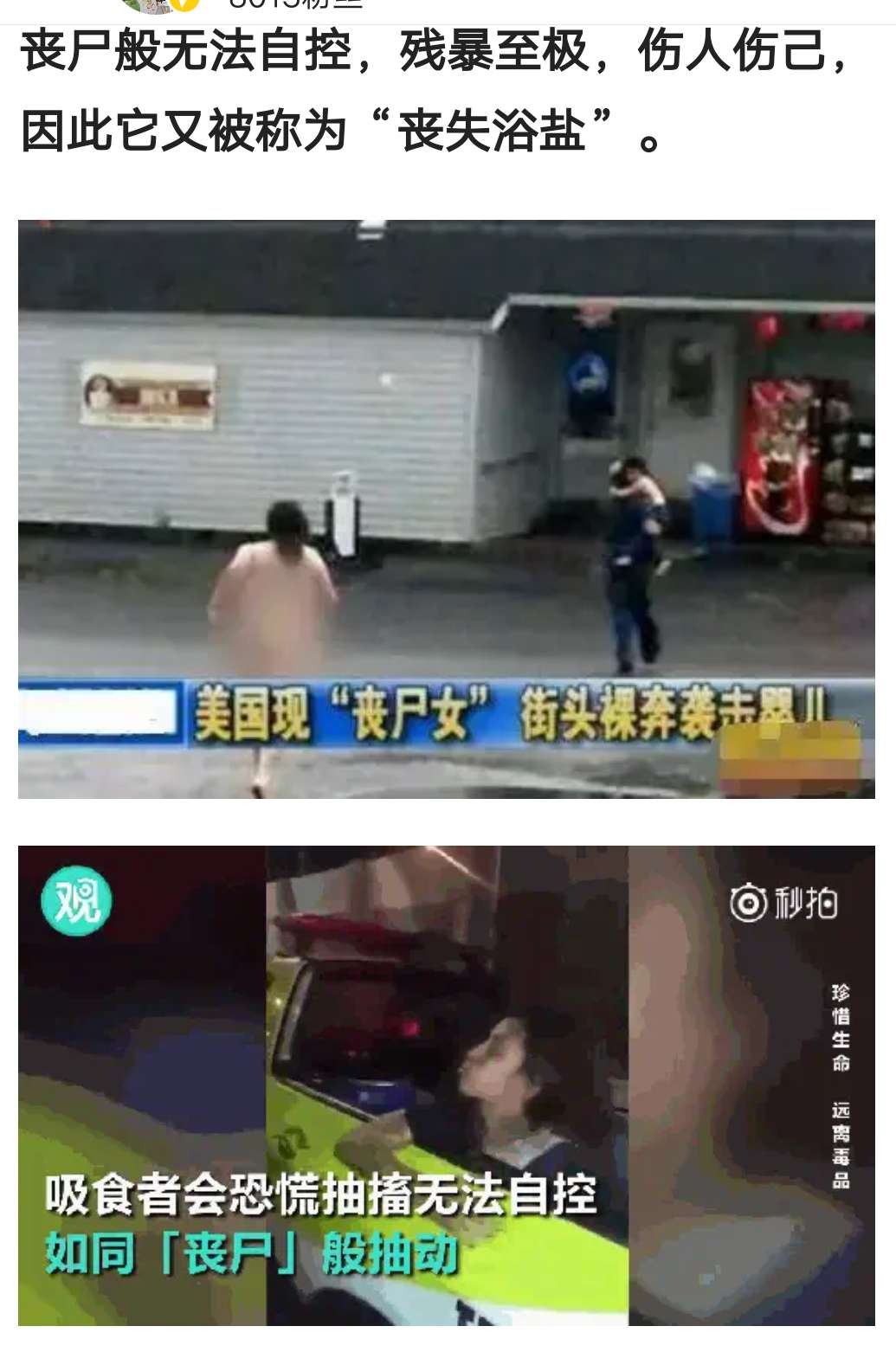 他们会幻想自己是个刀枪不入的巨人,像丧尸般无法自控,残暴至极,伤人伤己,因此它又被称为“丧失浴盐”。